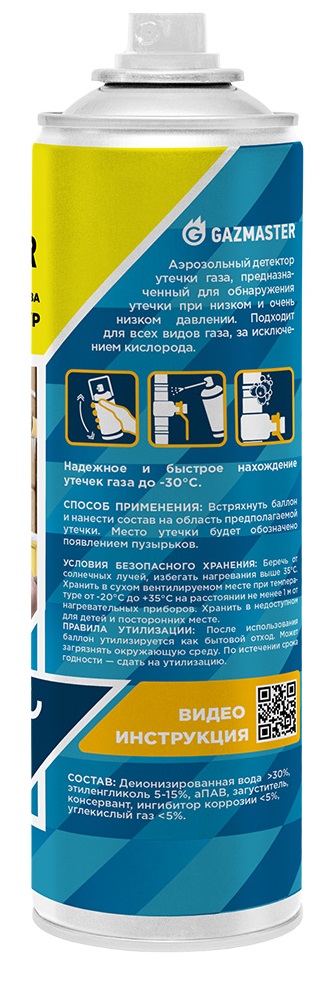 Аэрозольный детектор утечек газа GAZMASTER - продукт специально выпущенный для проверки герметичности любого газового и воздушного соединения.