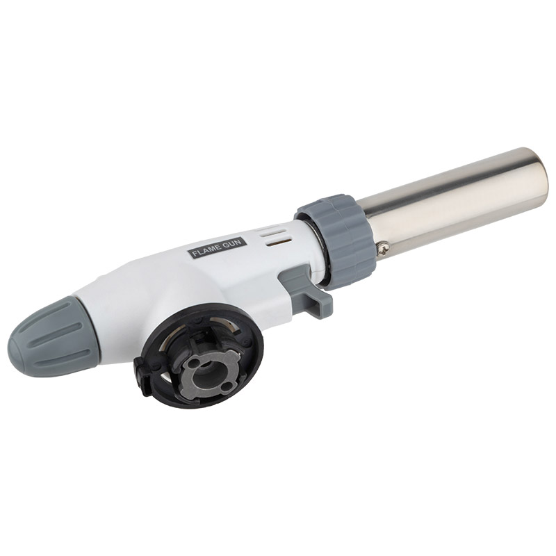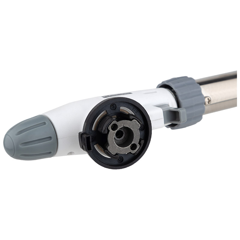 Портативная газовая горелка Форма горелки - пистолетная Вес нетто 107гр, Размер изделия: 192*40*57мм, диаметр сопла: 22мм длина сопла 70 мм Тип соединения- цанговое Тип топлива - Пропан-бутановая смесь или изобутан Тип зажигания - пьезоподжиг Мощность: 6500BTU/1.9Квт Максимальная температура пламени - 1300°C Способ смешения газа - внутрисопловое Способ управления- вентиль Материал рукоятки -АБС пластмасса, алюминий Материал сопла -Нержавеющая сталь, железо, керамика Регулятор подачи воздуха