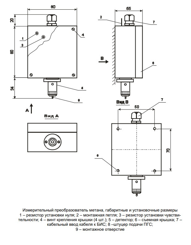 БИС соединяется с ИП метана измерительным кабелем (экранированным, 3-х жильным), образуя измерительный канал СН