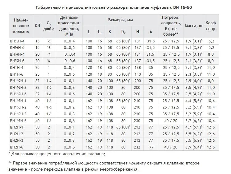 - Исполнение клапана: Н — двухпозиционный, В — трёхпозиционный, С — для жидких сред, М — с электроприводом регулятора потока газа