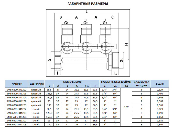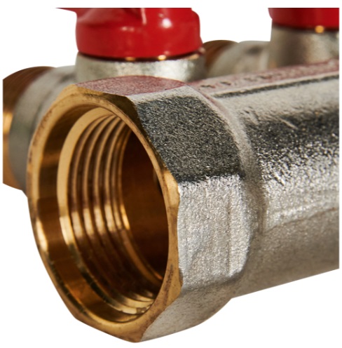 STOUT SMB 6210 341203 - это коллектор с шаровыми кранами диаметром 3/4", имеющий три отвода по 1/2" каждый. Красные ручки кранов обеспечивают удобство управления. Устройство используется для регулировки потока теплоносителя в системе водяного отопления и установки комфортной температуры.