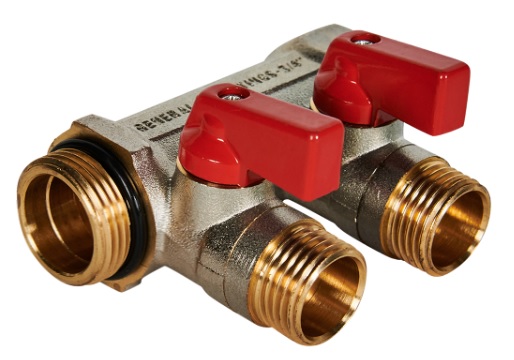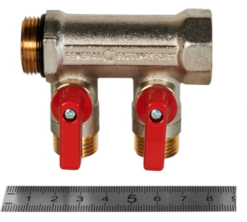 Коллектор с шаровыми кранами Stout на 2 выхода 3/4'х1/2' (красные ручки) применяется для систем водоснабжения и отопления. Изготовлен их никелированная латуни. Коллекторы по принципу модульности можно соединять между собой.