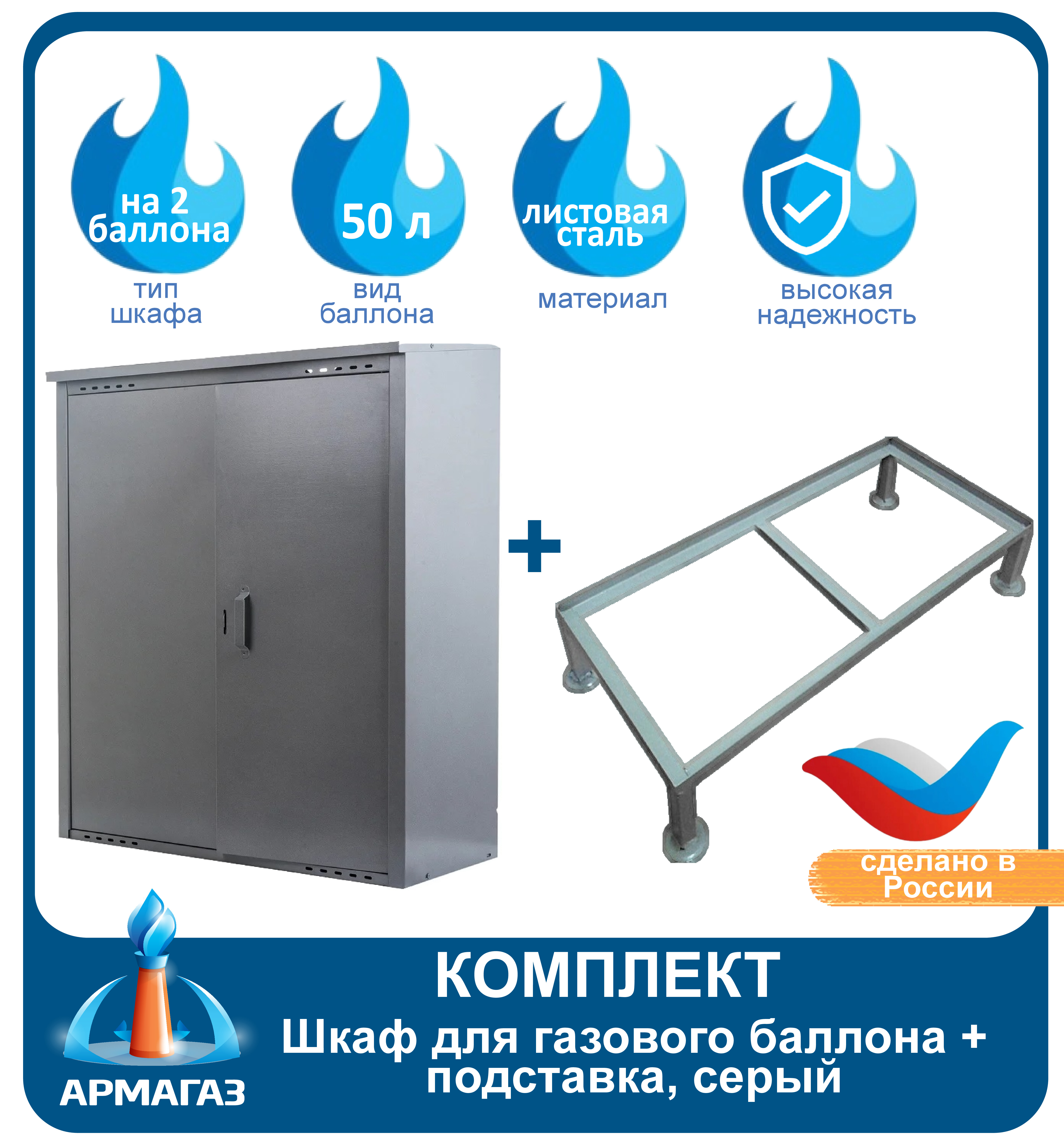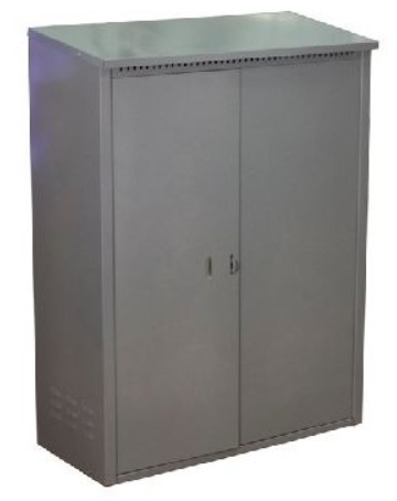 Шкаф изготовлен из оцинкованной стали толщиной 0,8 мм, покрашен с наружной стороны порошковой краской, что обеспечивает двойную защиту от коррозии на весь срок эксплуатации. Метод порошковой покраски позволяет получить полимерное покрытие на поверхности металла, которое эффективно защищает изделие от воздействий окружающей среды. На фронтальной части шкафа имеются вентиляционные отверстия. Наличие ушек на дверцах позволяет закрыть шкаф навесным замком для исключения возможности несанкционированного доступа к баллонам.