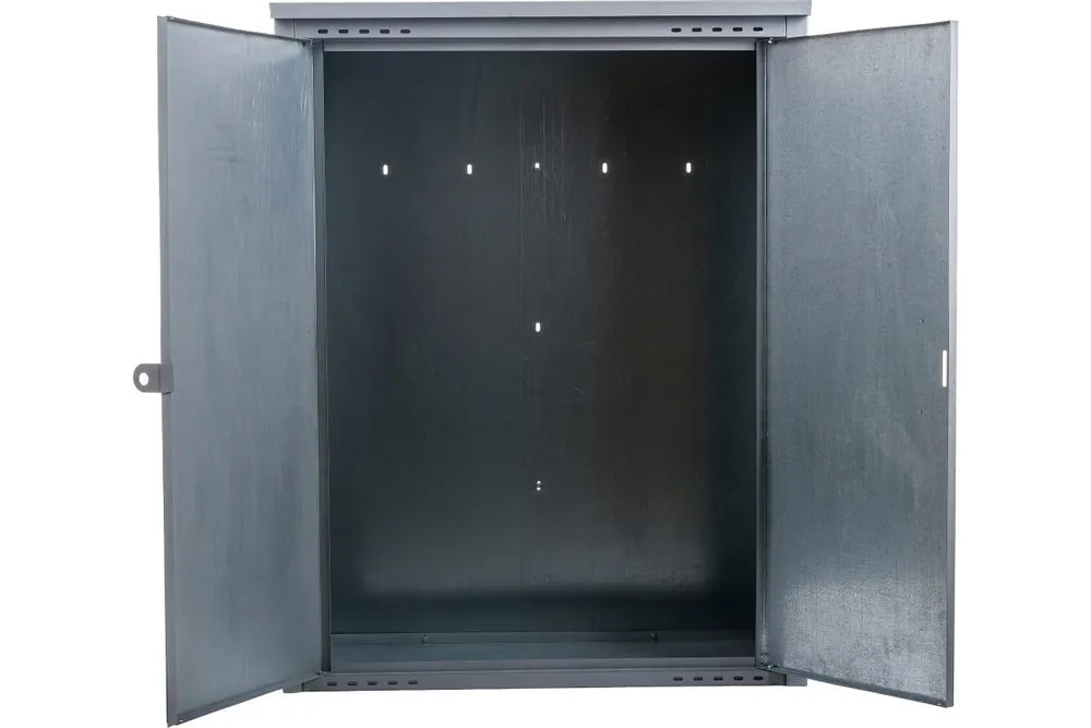 Шкаф для двух газовых баллонов 50 л полностью отвечает всем требованиям и нормам безопасности. Подходит как для длительного хранения, так и для ежедневного использования баллонов. Для этой цели производитель предусмотрел возможность подключения баллонов непосредственно из газового шкафа, для этого на задней стенке имеется отверстие для протяжки шланга. В шкафу баллоны защищены от внешних неблагоприятных факторов - прямых солнечных лучей и сезонных осадков.