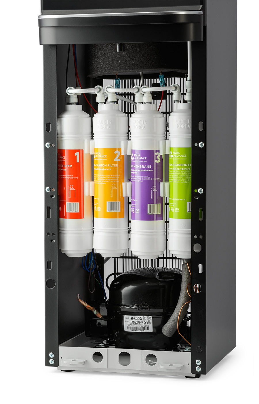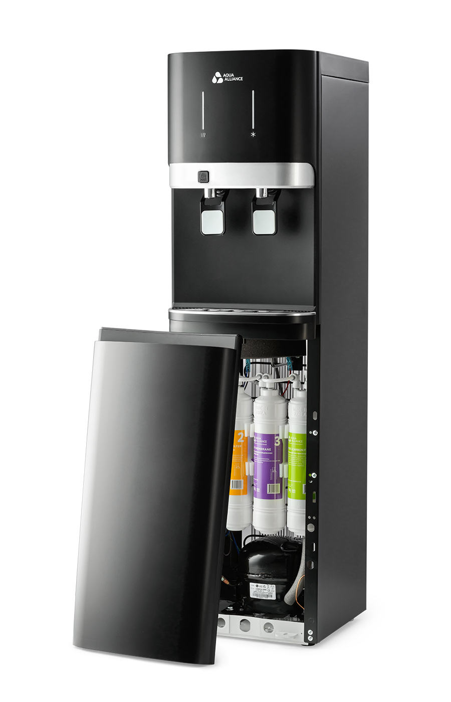 Пурифайер Aquaalliance (AEL) A820s-LC black напольного типа с ультрафильтрационной системой очистки воды. Модель комплектована удобными краниками нажим чашкой c защитой от случайного нажатия. Комплектация: кран врезки, трубка ¼ 3 метра, фильтры 12 U тип, инструкция.