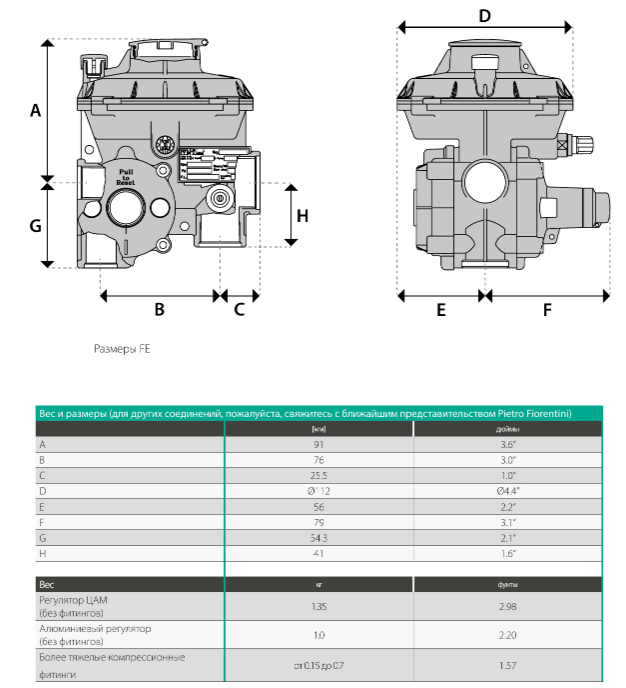 Регулятор давления газа Pietro Fiorentini FE10-L, low temp, 20 мбар. прямой со штуцерами