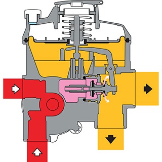 Внутренние защитные клапаны могут быть задействованы для наружного применения, если они установлены в замкнутых объемах, или для подземных сооружений. Благодаря двухступенчатой конструкции они обеспечивают: высокую точность, высокую надежность в эксплуатации и легкость установки. Эти регуляторы изготовлены в соответствии с требованиями UNI 8827.