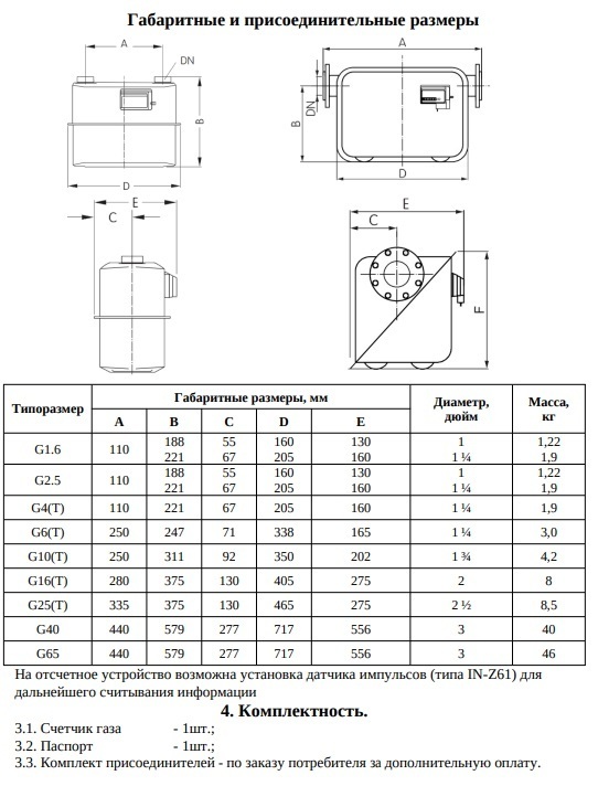 *Дополнительная информация: диаметр резьбы накидных гаек данного газового счётчика подходит для замены моделей счётчиков газа BK-G16