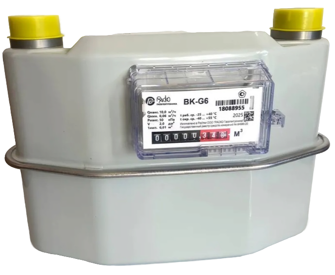 Счётчик газа диафрагменный РАСКО Газэлектроника BK-G6 1 1/4"— это современные коммунальные газоизмерительные приборы, предназначен для коммерческого учёта количества потребляемого газа. Измеряемая среда: природный газ, пропан, бутан, инертные газы и другие неагрессивные, неоднородные по химическому составу газы.