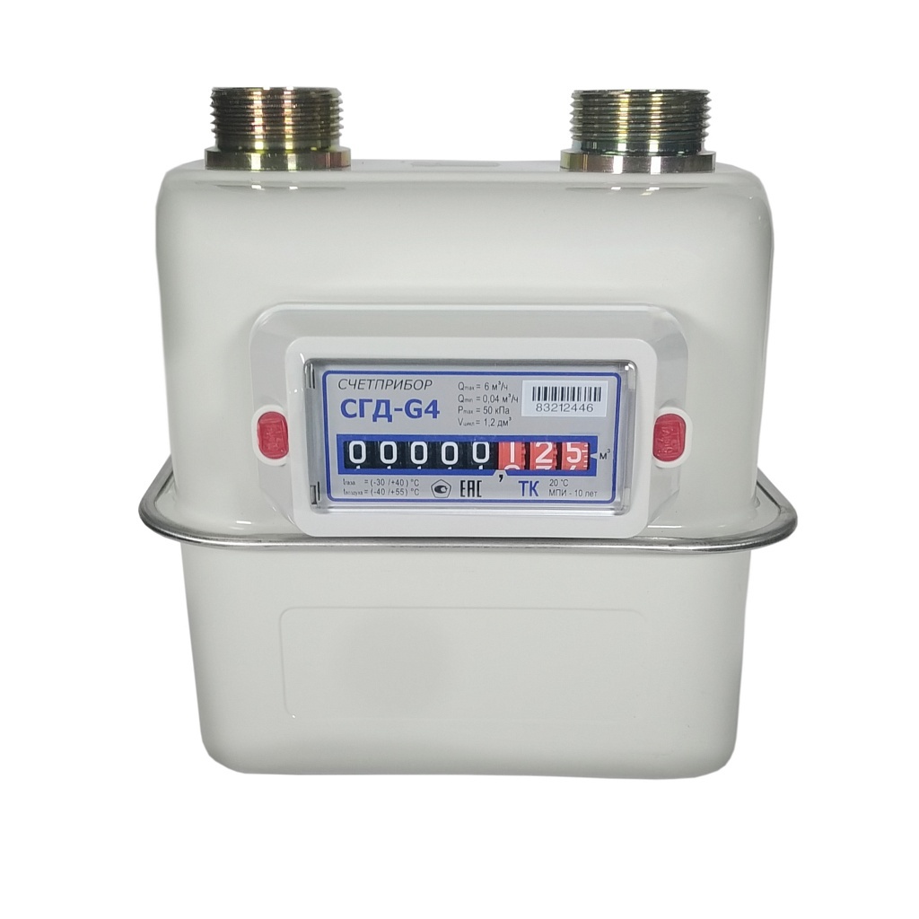 Счётчик газа диафрагменный СГД G4Т — это современные коммунальные газоизмерительные приборы, выпускаемые заводом «Счётприбор» г. Орёл, предназначен для коммерческого учёта количества потребляемого газа. Измеряемая среда: природный газ, пропан, бутан, инертные газы и другие неагрессивные, неоднородные по химическому составу газы.